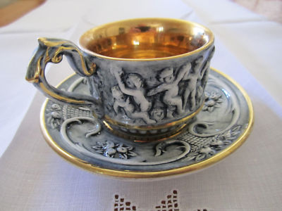 Title (ebay affiliate link): R Capodimonte Cup & Saucer Cherubs in Relief Gold/Gild