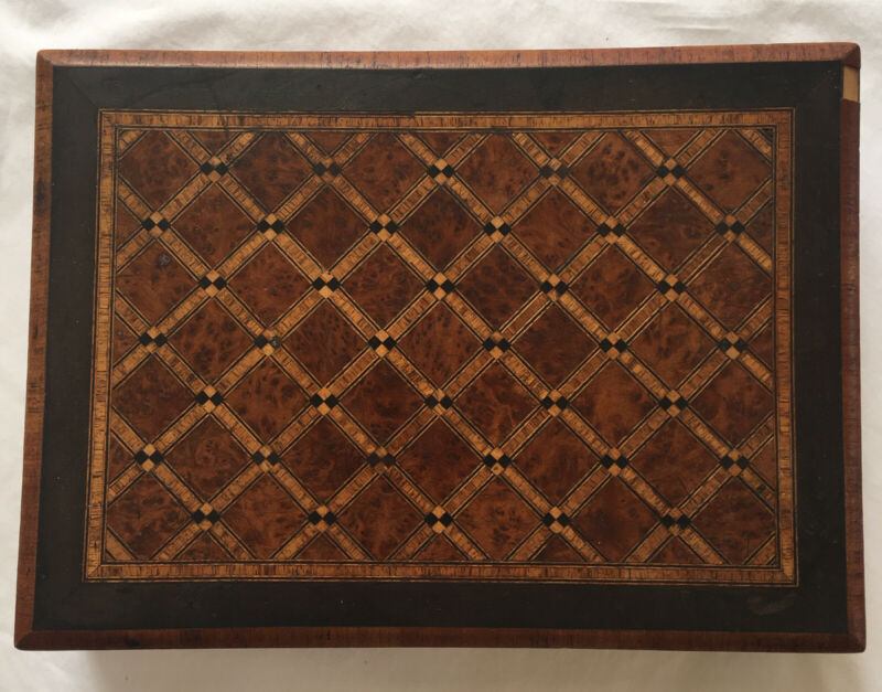 Title (ebay affiliate link): ANTIQUE WOOD INLAY BOX 10 7/8” W X 8” D X 2 1/2” H.