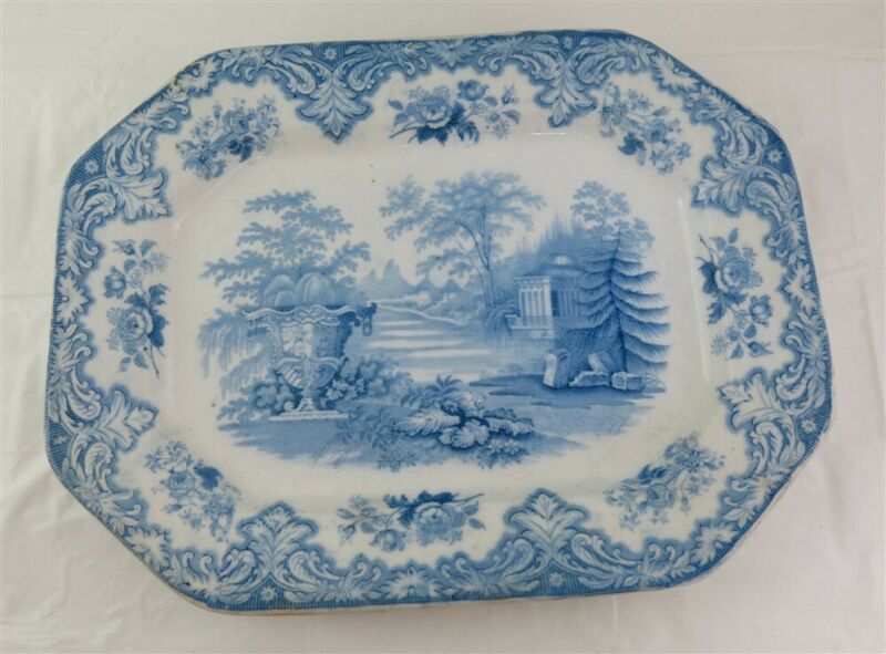 Title (ebay affiliate link): Antique Staffordshire Ironstone Blue Transferware Scenic Serving Platter