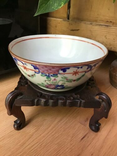 Antique Chinese Bowl Circa 1740 with Carved High Wood Stand