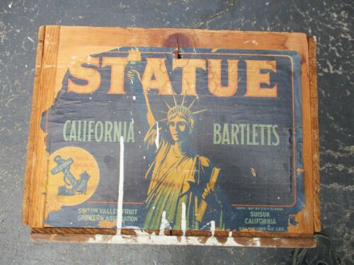 Vintage 1920s STATUE California Barletts Suisun Valley Fruit wood crate box