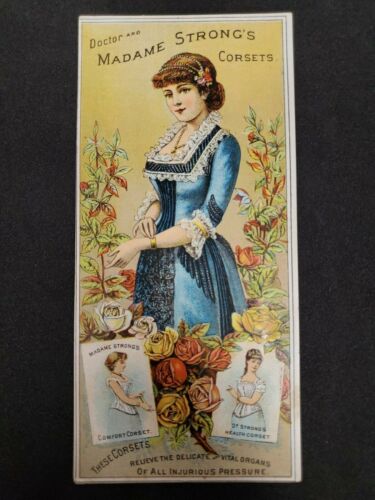 Title (ebay affiliate link): Antique Trade Card MADAME STRONG''S CORSETS, PROTECT VITAL ORGANS, HAVERHILL MA