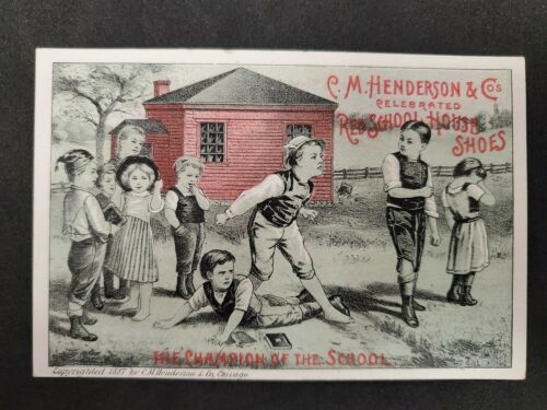 Title (ebay affiliate link): Antique Trade Card RED SCHOOL HOUSE SHOES, CM HENDERSON, FIGHTING OFF BULLY