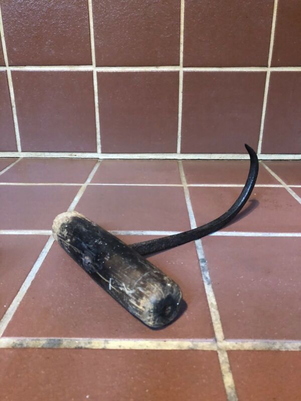 Vintage / Antique 6" long hay Ice meat hook metal with wooden handle
