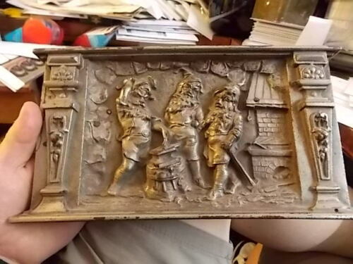 Title (ebay affiliate link): ANTIQUE CAST IRON STOVE? PLAQUE, DWARES BLACKSMITHING W ANVIL & TOOLS