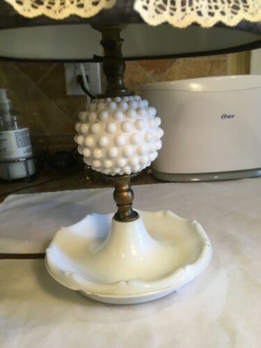 Vintage Small White Hobnail Milk Glass Boudoir Parlor Lamp w Shade