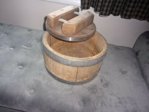 Title (ebay affiliate link): VINTAGE WOODEN CHEESE MOLD & PRESS WITH WOOD COVER