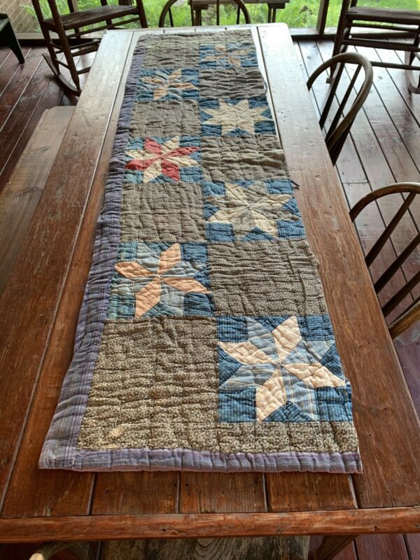 Title (ebay affiliate link): Early Lg Quilt Piece Blue Calico Old Primitive Textiles Table Mat Bed Crafts