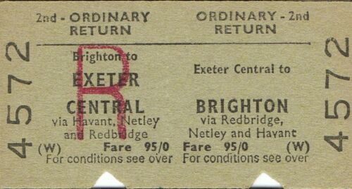 Title (ebay affiliate link): Railway ticket BR Exeter-Central to Brighton second class return undated