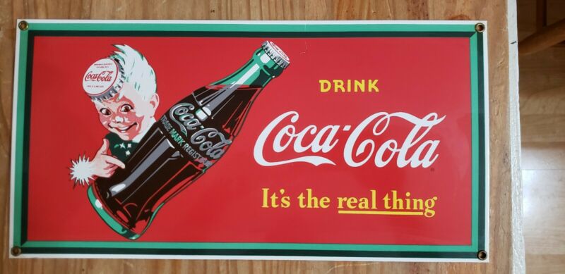 Title (ebay affiliate link): VINTAGE Drink Coca-Cola "IT''S THE REAL THING" Porcelain Sign 16 1/4 x 8 1/4