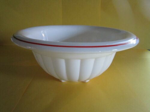 1940s Hazel Atlas Moderntone Platonite Deco Panel White 9 1/2 Bowl W / Red Trim