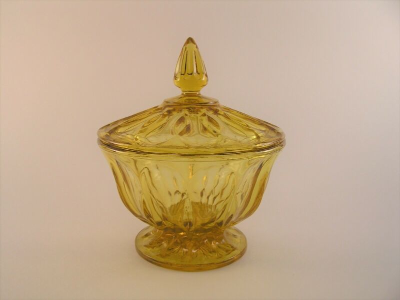 Vintage 60''s Mid Century Glass Anchor Hocking Amber Candy Dish Pedestal with Lid