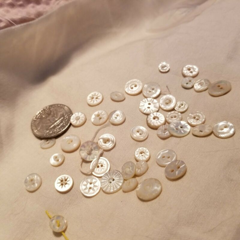 Title (ebay affiliate link): ANTIQUE ESTATE TINY MOTHER OF PEARL ETCHED BUTTONS. PERFECT 4 VICTORIAN DOLLS
