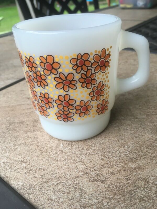 Anchor Hocking Milk Glass Mug Flower Design