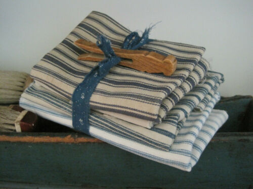 Title (ebay affiliate link): Four Pieces of Old Blue White Striped Ticking Fabric Textile Primitive American