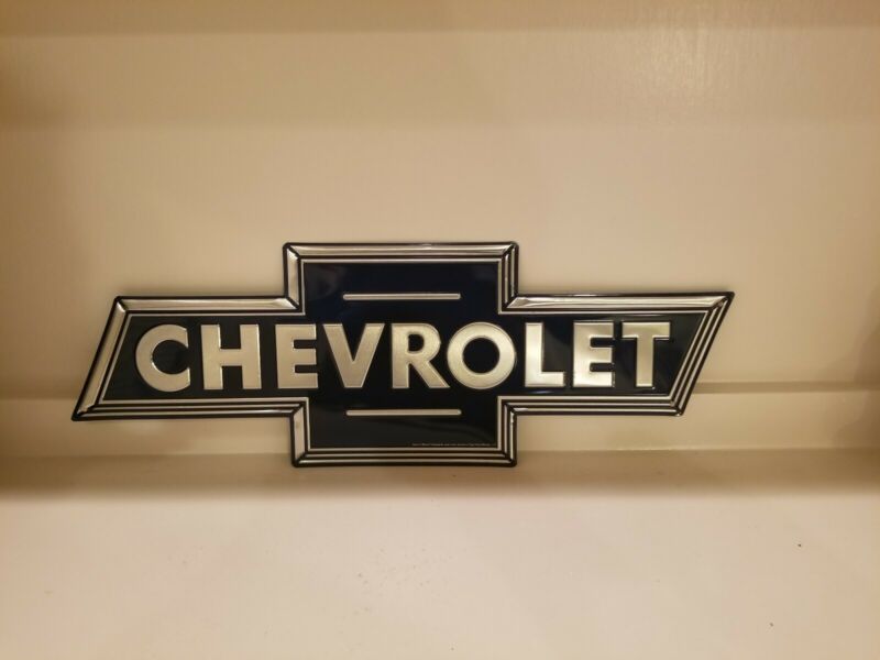 Title (ebay affiliate link): Chevrolet BowTie Blue And Chrome Embossed Metal Sign