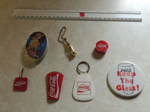 Title (ebay affiliate link): Coca Cola 90''s Advertising Lot x8 items- Ruler, Tin, Pin, Magnet,+ 2x Keychains