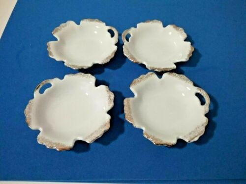 Four Vintage Porcelain White with Gold Rim Butter Pat Dishes