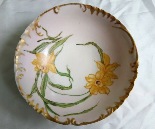 Date 1894: Antique Porcelain BOWL Hand Painted Victorian, China, Daffodil