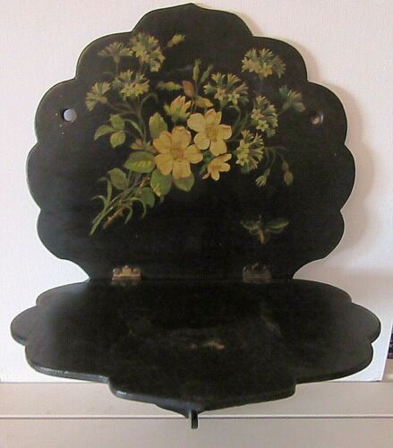 Title (ebay affiliate link): ANTIQUE BLACK LACQUER AND STENCILLED FLOWERS FOLDABLE HINGED WALL RACK