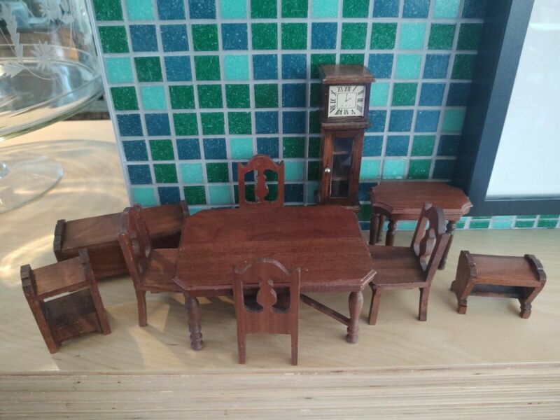 10 Piece Vintage Strom Becker lot Genuine Walnut Table chairs Clock chest