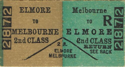 Title (ebay affiliate link): Railway tickets VR Elmore to Melbourne up second class return unused