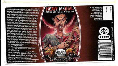 Title (ebay affiliate link): Danish Micro Brewery Beer Label Amager Bryghus - Heavy Mental