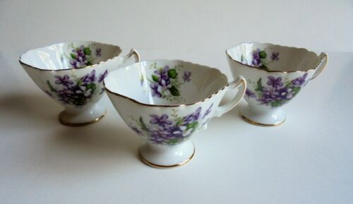 3 VINTAGE ROSSETTI SPRING VIOLETS CUPS HAND PAINTED OCCUPIED JAPAN