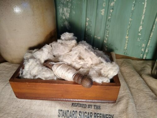 Title (ebay affiliate link): PRIMITIVE RAW COTTON in VINTAGE WOODEN BOX + OLD WOODEN SPINDLE OF STRING