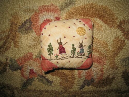 Title (ebay affiliate link): Primitive tiny Sampler Pillow~ Rabbits Watching The Moon ~Early Quilt~ Folk Art
