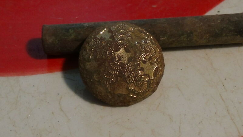 Title (ebay affiliate link): DUG CIVIL WAR GILTED TIN BACK KEPI BUTTON STAR DESIGN NICE