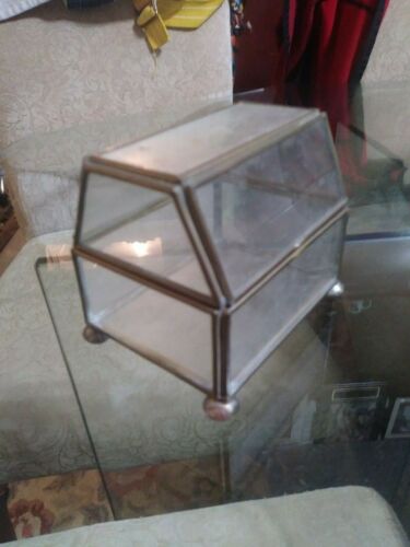 vintage small glass and brass curio cabinet casedisplay case 4"x3"x3 1/2"