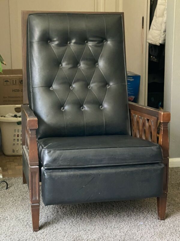 Title (ebay affiliate link): Vintage Leather Recliner Dark Wood Sides Snd Back