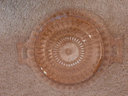 Title (ebay affiliate link): Vintage Pink Depression Glass 10 1/2" Cubist Cake Plate with Handles