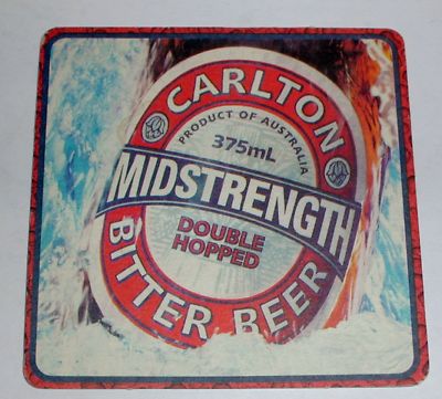 AUSTRALIA BEER COASTER CARLTON MIDSTRENGTH