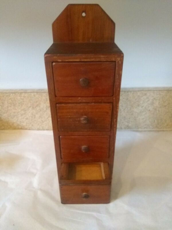 Title (ebay affiliate link): Vintage Antique wooden Primitive 5 Drawer Hanging SPICE BOX Apothecary 12 3/4"