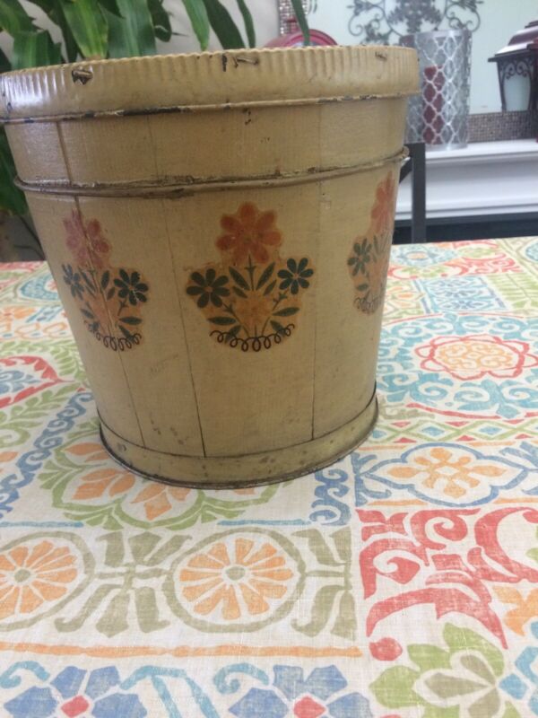 Antique Folk Art Primitive Sugar Bucket With Lid Flower Design
