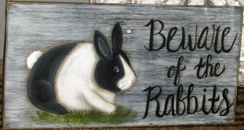 Title (ebay affiliate link): *~*PRIMITIVE*~* HP FOLK ART PRIM BLACK & WHITE BUNNY SIGN *~* RECLAIMED WOOD