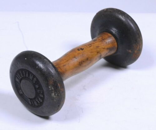 Title (ebay affiliate link): Antique Williams Co. Paris 2 LB Wood Handle Iron Dumbbell 5.25"L x 2.5"D