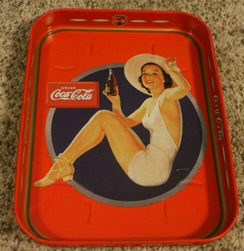 Title (ebay affiliate link): Vintage Girl Wearing Swimsuit Holding A Bottle of Coke Coca Cola Metal Tray