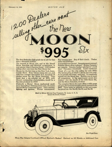 Title (ebay affiliate link): 1924 Moon Motor Cars Original Advertisement: Moon Six - St. Louis, Missouri