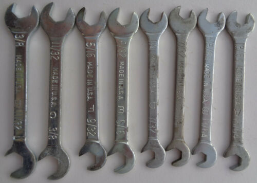 Lot of 8 midget wrenches made in USA: 3/8 11/32 5/26 9/32 1/4 7/32 15/64 & 13/64
