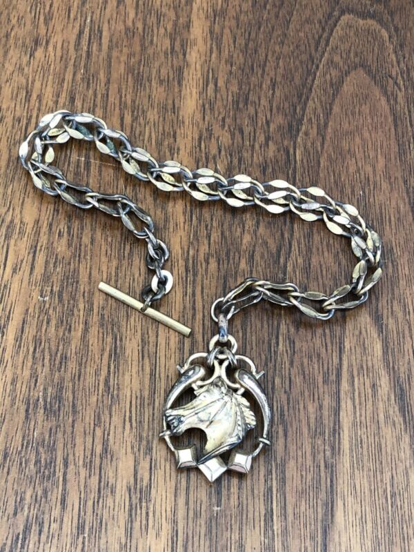 Vintage Antique Gold-tone Pocket Watch Fob Chain Horse Head