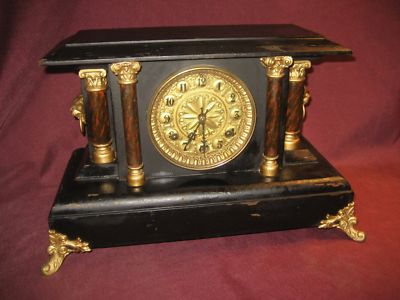 ANTIQUE ORNATE WATERBURY MANTLE CLOCK CHIMES