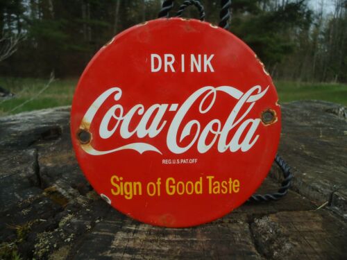 Title (ebay affiliate link): OLD VINTAGE DRINK COCA-COLA SIGN OF GOOD TASTE PORCELAIN GAS STATION DOOR SIGN!