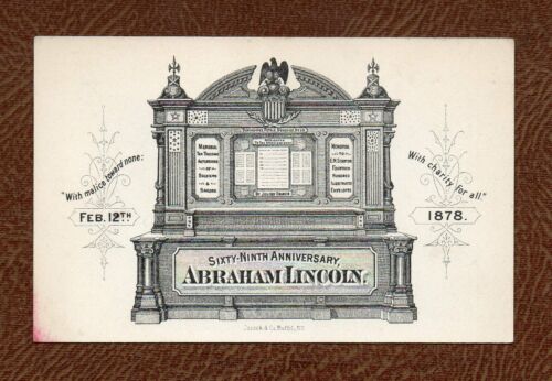 ABRAHAM LINCOLN Feb. 12, 1878 69th Anniver. CALLING CARD Julius Francis Memorial