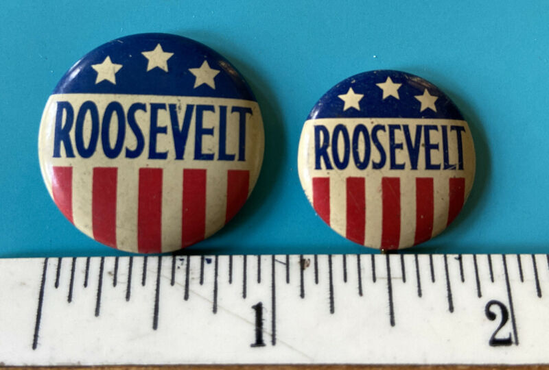 Two original FDR Franklin D. Roosevelt Presidential campaign buttons