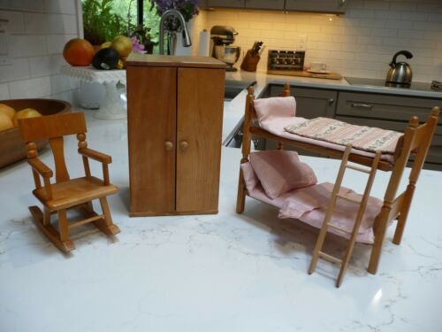 Title (ebay affiliate link): Vintage 1950s Strombecker Doll Furniture Wardrobe Closet Beds Bunkbeds
