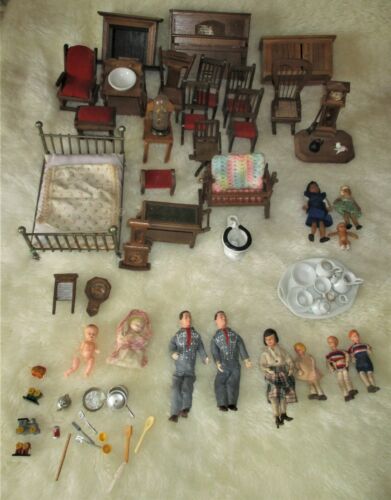Title (ebay affiliate link): Vintage Wooden Doll House Furniture Family Dolls Accessories Huge Lot