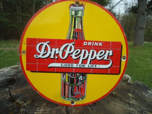 Title (ebay affiliate link): VINTAGE 1939 DRINK DR. PEPPER GOOD FOR LIFE PORCELAIN SODA SIGN